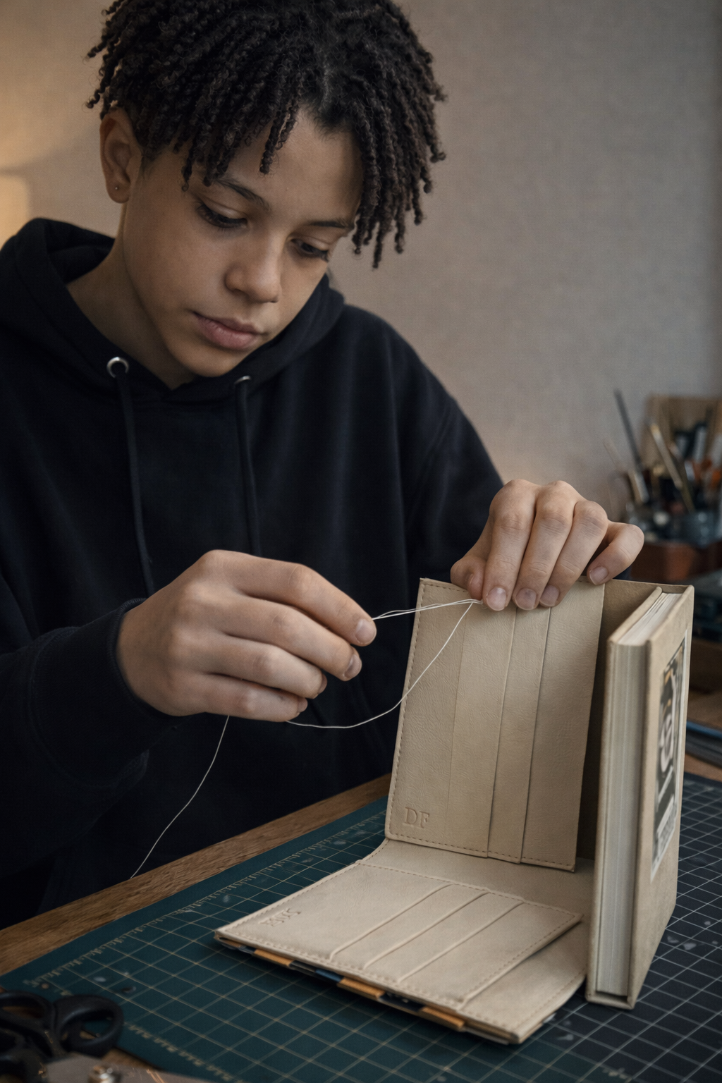 Each book wallet is made by hand in small batches, from cutting and stitching to the final details. I focus on quality, care, and capturing the look and feel of a real book in every piece.
